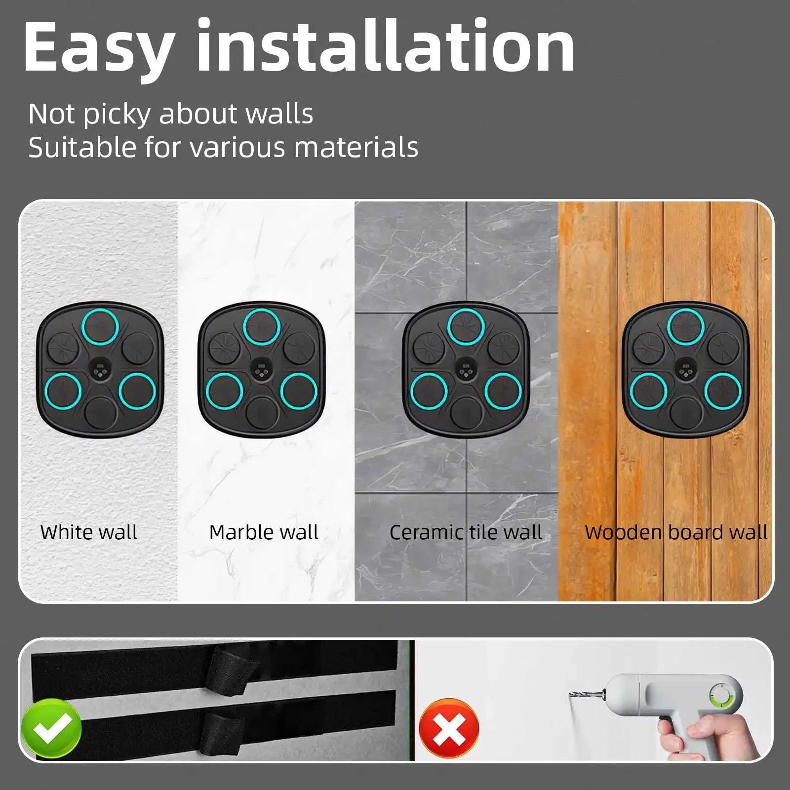 EASY TO INSTALL: The music boxing machine is wall-mounted to save space and no drilling is required. Strong Velcro sticks the boxing training equipment firmly to the wall and will not fall off. Provides a safe and adjustable option that kids can enjoy too.